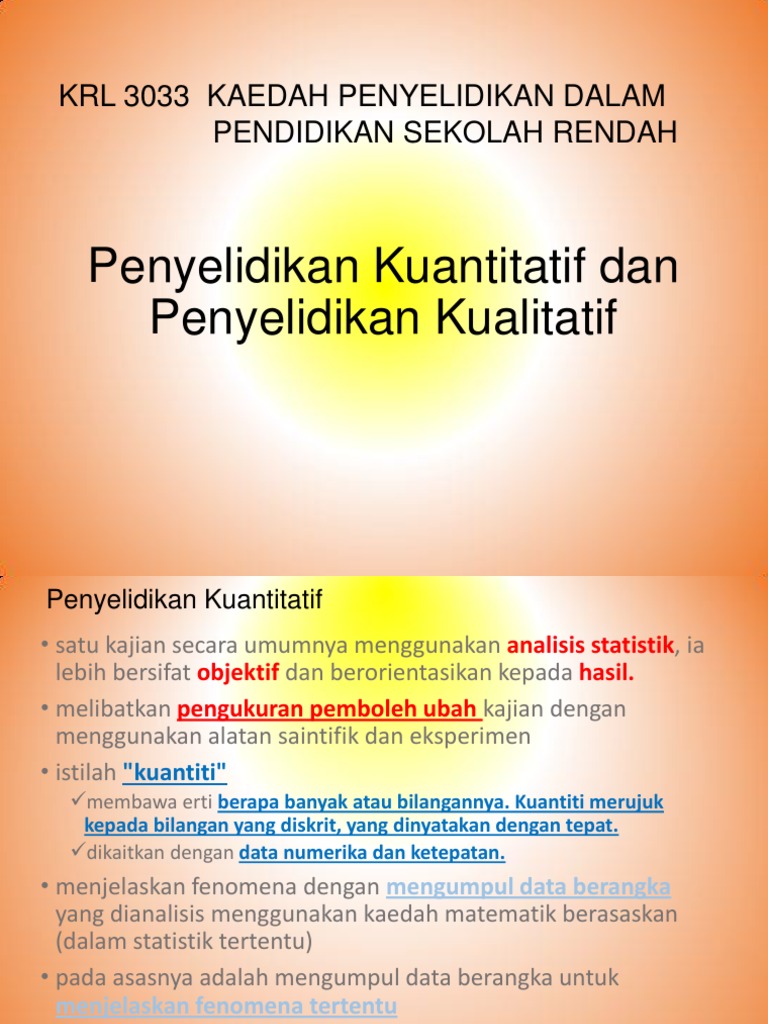 Related : Kaedah Kuantitatif Dan Kualitatif / Dalam penyelidikan sosial, jika kita membahagikan kategori kaedah penyelidikan menjadi dua bahagian, iaitu kualitatif dan kuantitatif..