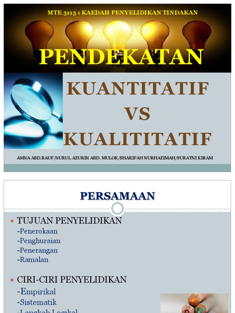 Kaedah Kuantitatif Dan Kualitatif / Dalam penyelidikan sosial, jika kita membahagikan kategori kaedah penyelidikan menjadi dua bahagian, iaitu kualitatif dan kuantitatif.