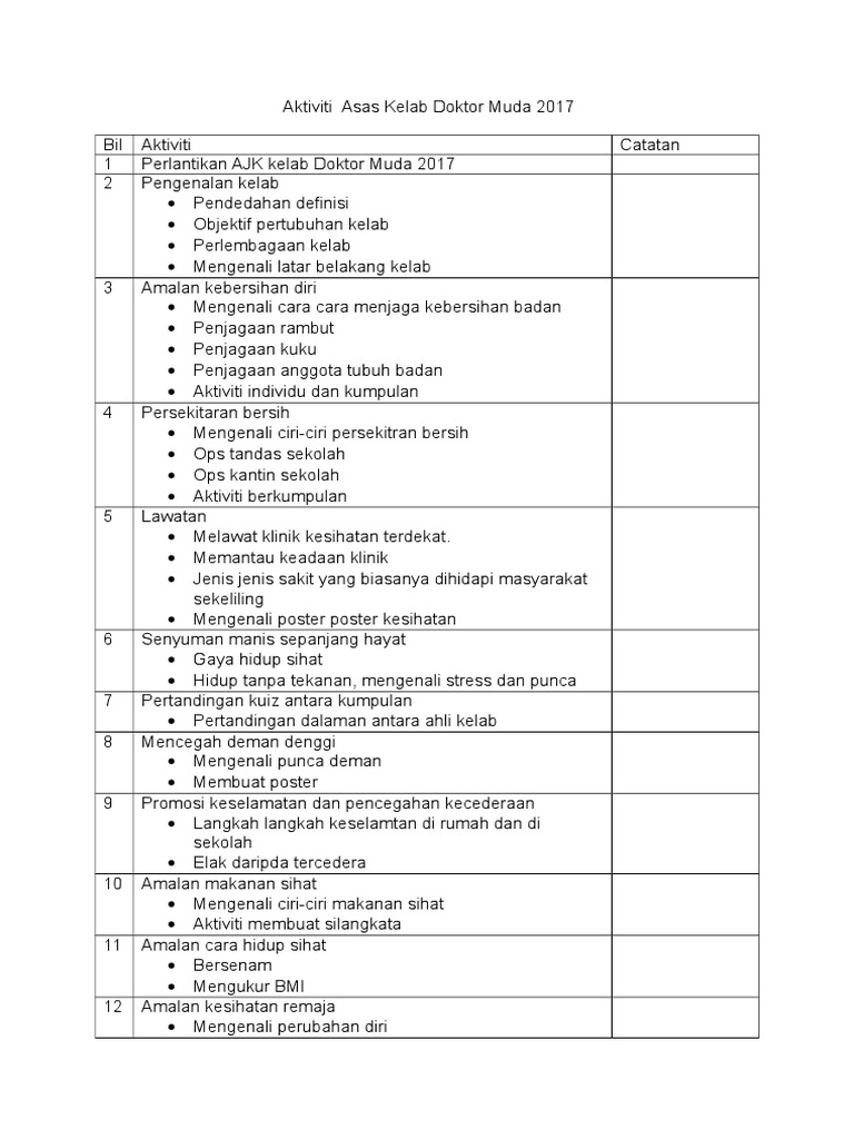 Kelab doktor muda sebagai salah satu aktiviti kokurikulum di sekolah. Aktiviti pengenalan kelab dan pemilihan ahli jawatankuasa menjaga kebersihan badan dan rambut melukis gambar rupa diri yang bersih pemeriksaan kebersihan diri dan rakan pengukuran bmi tinggi. Unit kokurikulum smk permatang pasir. Perkara untuk menjadi seorang doktor ialah mengetahui logo dan ikrar doktor muda. Daripada 8 acara yang dipertandingkan, skbbks telah menyertai 6 acara sahaja iaitu bercerita bahasa melayu, bercerita bahasa inggeris, sketsa, buku. Where everyone can share their health education information here. Kementerian kesihatan malaysia melaksanakan program doktor muda dengan matlamat melahirkan pelajar yang sihat, cergas dan cerdas. 4:58 astro ceria 201 358 просмотров. Latar belakang doktor muda doktor muda merupakan pelajar sekolah tahun 4, 5 dan 6 yang terpilih dan terlatih sebagai pembimbing rakan sebay. Pada 4 mei 2011 yang lalu, kelab doktor muda telah menyertai konvensyen kelab doktor muda peringkat daerah di sjk (t) vageesar. Share to twitter share to facebook. Apakah masalahpergigian yang sering dilihat? Kempen 10 000 langkah ini merupakan strategi kdm untuk menggalakkan amalan yang baik untuk.